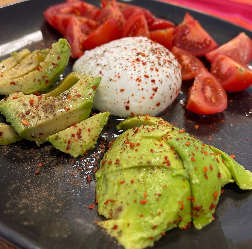 Все полить омега-3 или маслом из водорослей. Добавить немного оливкового масла и посыпать крупной розовой гималайской солью и свежим перцем. Сверху присыпать пчелиной пыльцой.