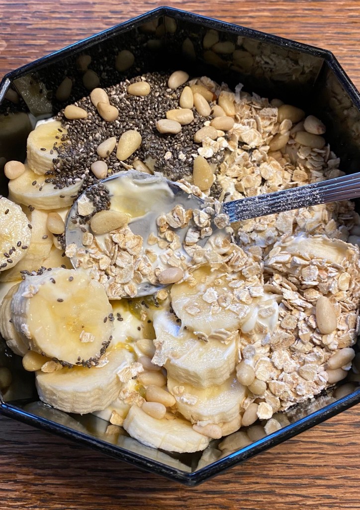 Взять свежий био йогурт ( лучше козий), добавить банан и семена чиа.
